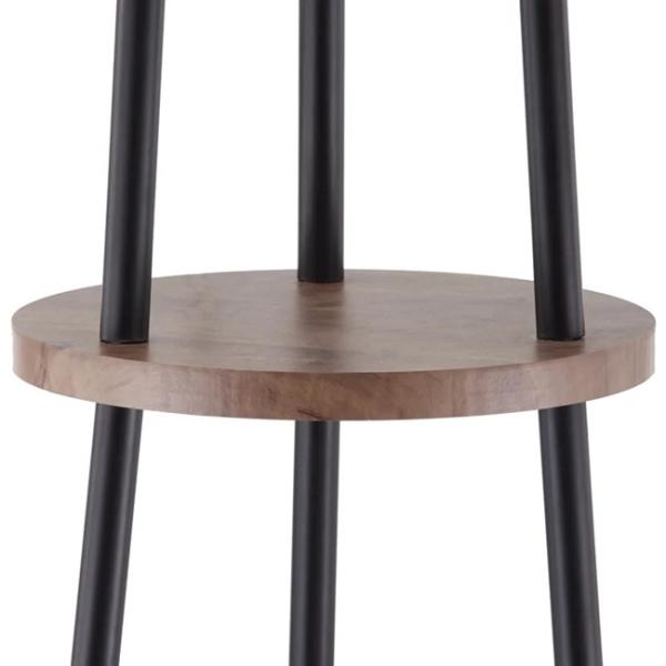 Add an inviting glow to your entryway or living room with this single-bulb floor lamp. This lamp stands over 5' tall (65") and showcases a metal, tripod-shaped base with two solid wood shelves for displaying decor and small plants. Its 100% linen empire shade gently filters light from one 150W bulb (sold separately). We love how its streamlined design makes this lamp fit with decor styles from contemporary to farmhouse. Position this lamp in your office for added light, or beside your bed for nighttime reading.